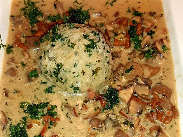 Schwammerlbrühe mit Semmelknödel