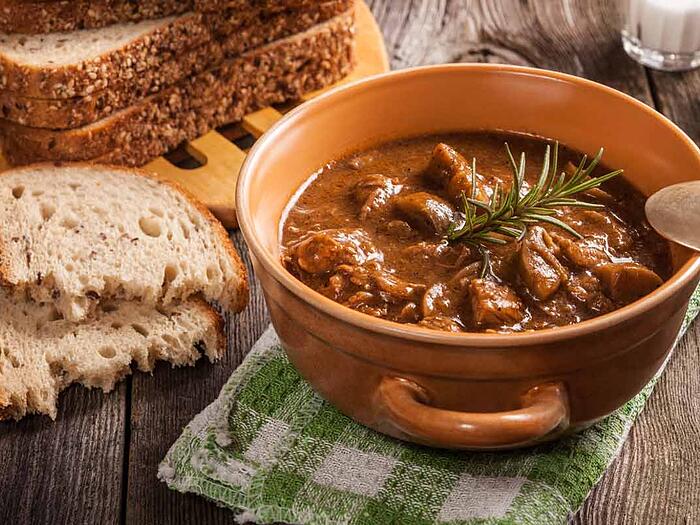 In Ungarn und anderen Teilen Osteuropas ist Gulasch ein klassisches Nationalgericht. Der deftige Fleischeintopf und die dazu benötigten Zutaten passen aber auch perfekt in die Fränkische Küche. Anstelle von Rind kommt in unser Gulasch-Rezept leckere fränkische Wurst.