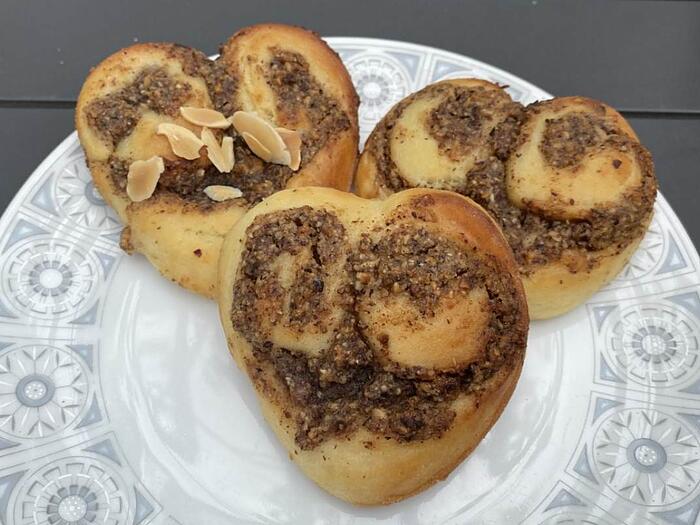 Nuss-Herzen aus Hefeteig