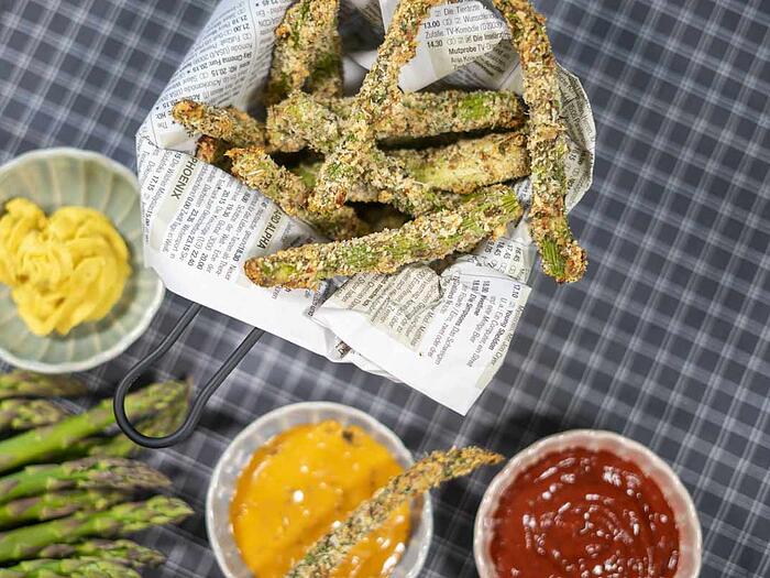 Knusprige Spargel-Pommes mit Mandel-Parmesan-Panade