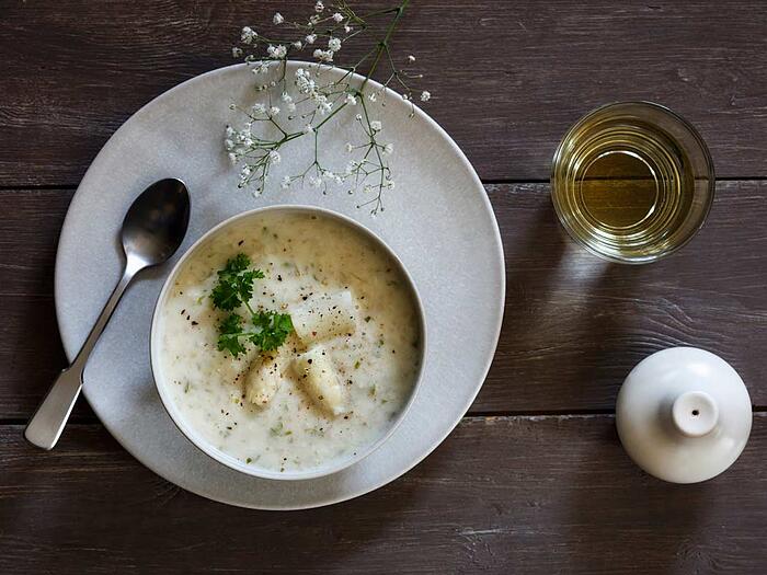 Dieses Rezept für eine köstliche Spargelcremesuppe beweist, wie kreativ und lecker man Spargelreste verwerten kann. Hergestellt aus den Resten von frischem, weißen Spargel, ist die Suppe schnell gemacht und total lecker.