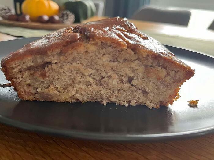 - Tipp: Wenn man möchte, kann man zusätzlich eine Banane halbieren und als Dekoration auf den noch ungebackenen Teig legen. Auch mit zusätzlichen Walnüssen und gehackter Schokolade kann man das Bananenbrot verzieren :)