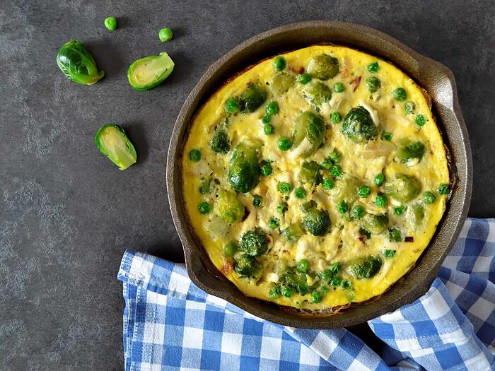 Vegetarische Frittata mit Rosenkohl und Erbsen